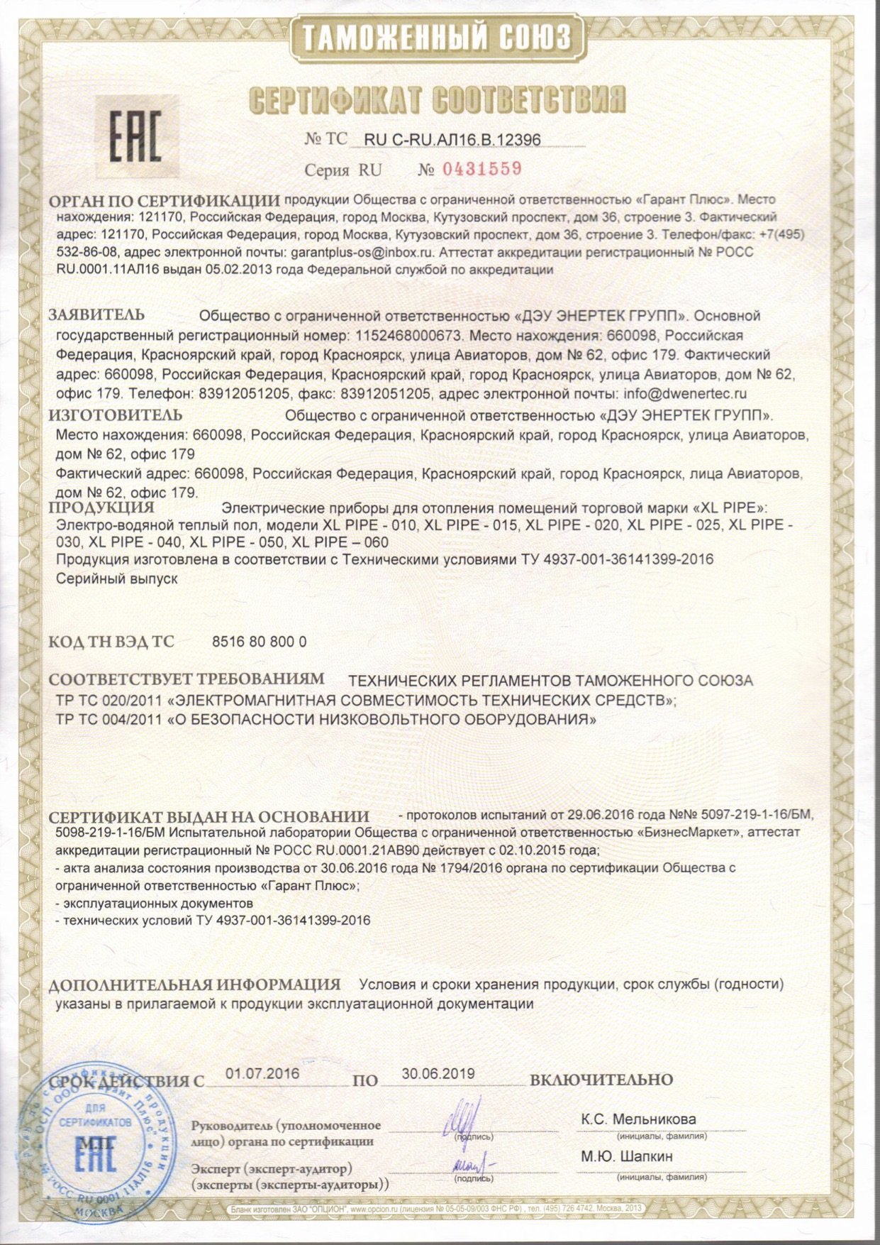 Сертификат соответствия