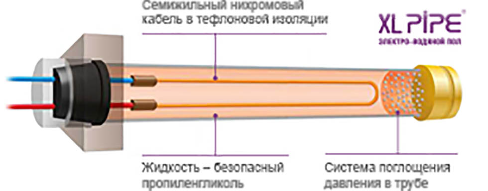 Все комплектующие в системе XL PIPE заводского производства: семижильный нихромовый кабель, система поглощения давления, соединительные фитинги и прочие детали.